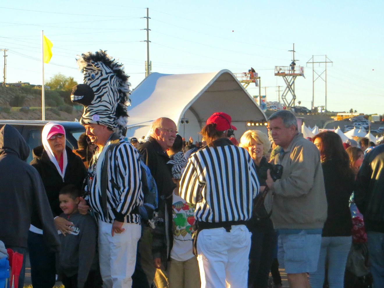 Watching is great, but actually flying in a balloon is even better! The Fiesta is unique in that visitors can also ride in many of the balloons.Only here will you see the launch directors, known as zebras, because of their black and white striped outfits. They wear these outfits in order to be easily seen by the pilots. These ‘zebras’ allow the balloons to take off in a scheduled order to keep them from creating a massive ‘traffic jam’ in the sky…and to keep watch over weather conditions so that the balloons will be safe.