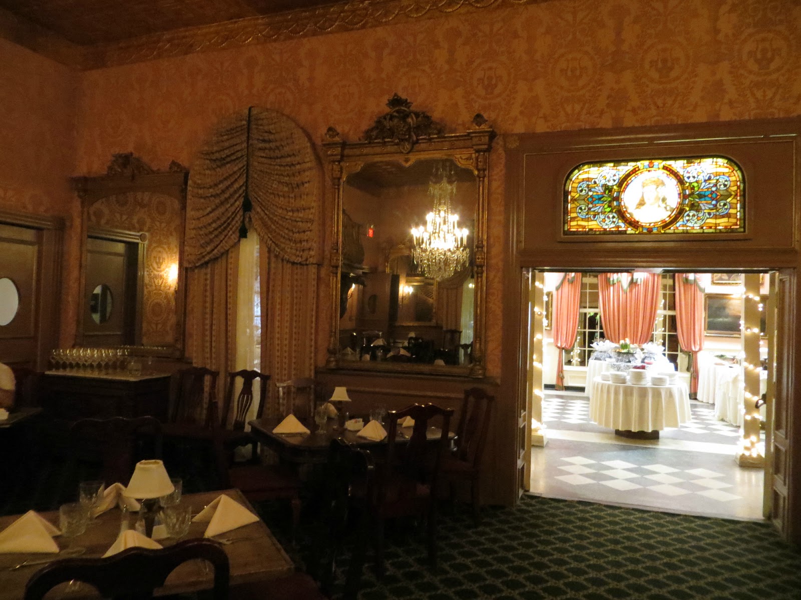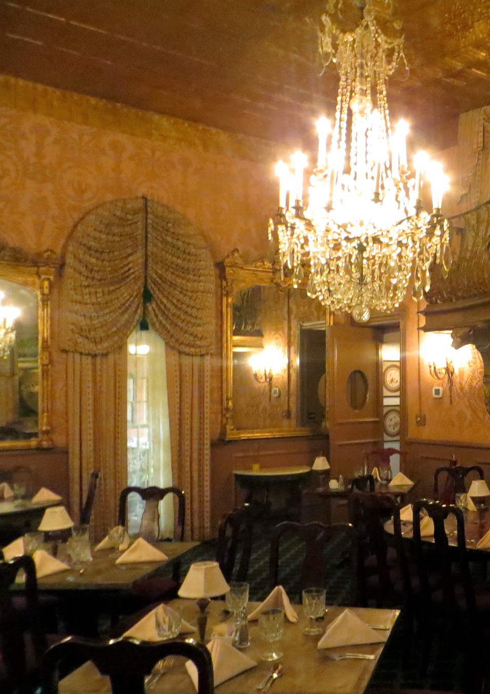 The 160-year-old historic building housing the elegant Double Eagle restaurant in Mesilla, NM has it all!! It is filled with art, antiques, Baccarat crystal chandeliers, gold ceilings and even two ghosts! We could just imagine people in period dress sitting there with us.