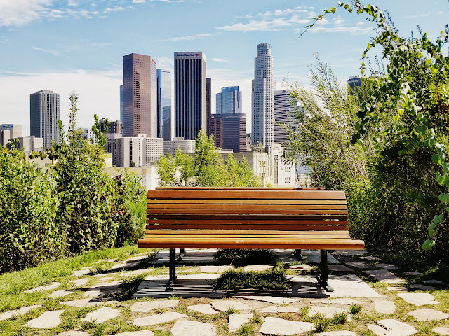 Here is hidden gem of a viewing spot in Downtown LA at Vista Hermosa Natural Park. That bench shot with downtown LA in the background is one of the most iconic in the entire city.